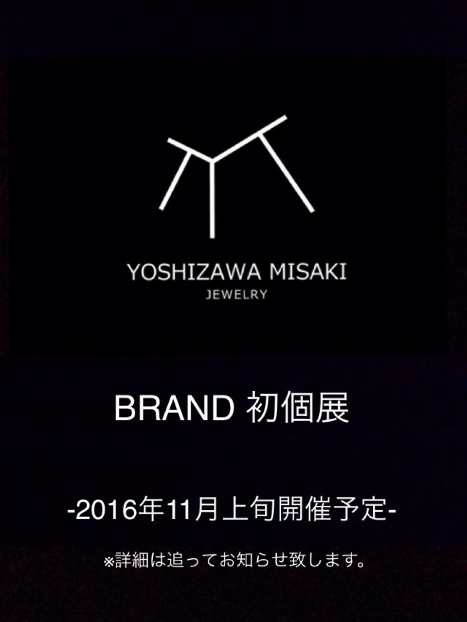 2016年11月上旬にYOSHIZAWA MISAKI JEWELRY のBRAND 初個展を開催を決定致しました!